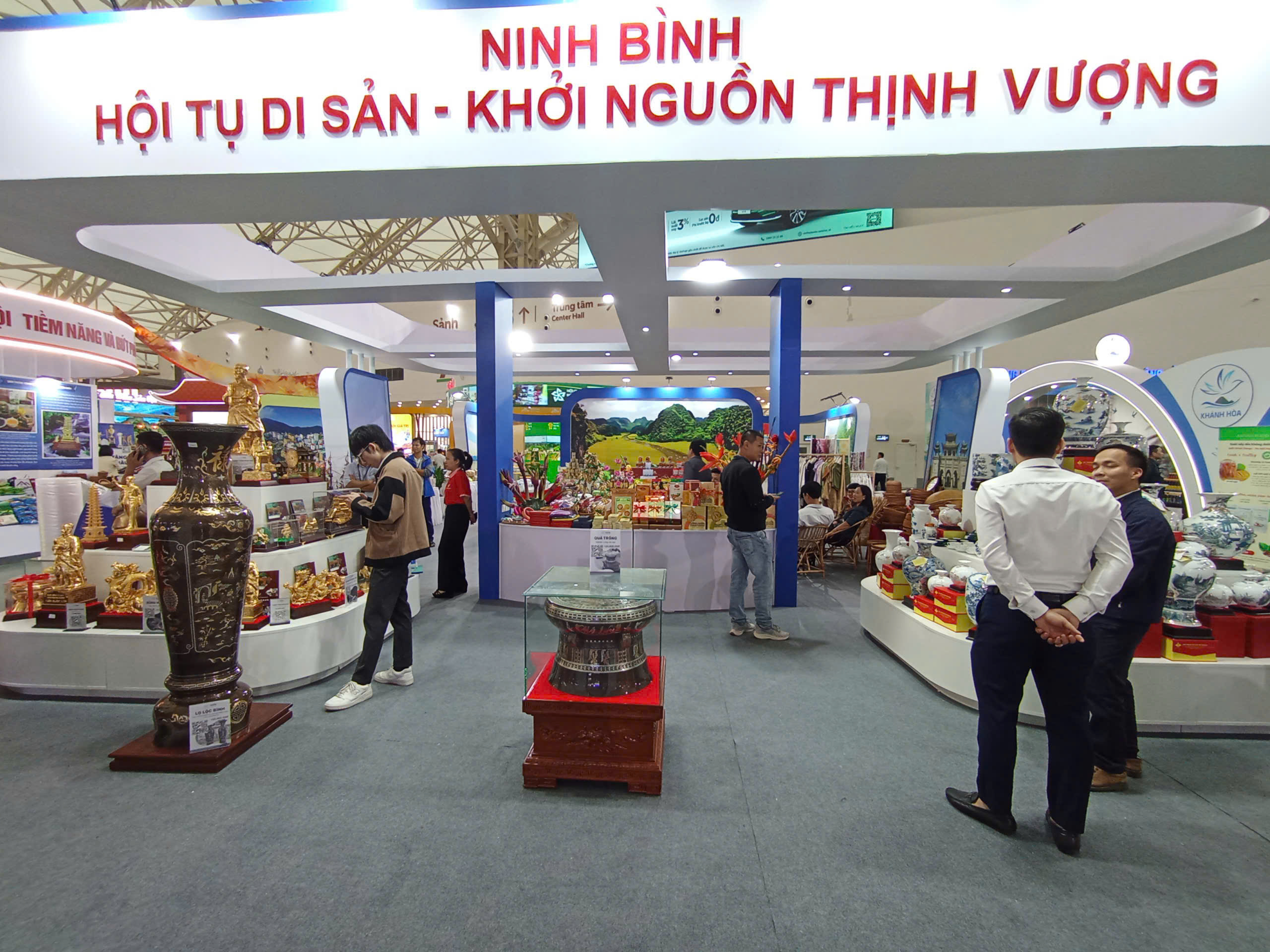 Không gian trưng bày được thiết kế lấy cảm hứng từ non nước Tràng An – Di sản Văn hóa và Thiên nhiên Thế giới, tạo nên điểm nhấn ấn tượng, thu hút đông đảo khách tham quan. Thông qua hội chợ, Ninh Bình mong muốn mở rộng thị trường tiêu thụ trong nước, kết nối với đối tác quốc tế, đồng thời quảng bá hình ảnh con người, văn hóa và tiềm năng kinh tế – du lịch của tỉnh đến bạn bè trong và ngoài nước. Đây cũng là dịp để các doanh nghiệp, hợp tác xã Ninh Bình gặp gỡ, trao đổi, tìm kiếm cơ hội hợp tác đầu tư, đưa sản phẩm địa phương tham gia sâu hơn vào chuỗi giá trị toàn cầu.